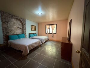 La habitación cuenta con dos camas matrimoniales.1 baño. Mesa de bar y sillas Su precio es de $1,000 por noche. Para 4 personas. Por persona extra se genera un costo extra, $250 adulto, $150 niño, niños a partir de 12 años ya cuentan como adulto. Su precio es de $1,000 por noche  [mphb_reservation_form]