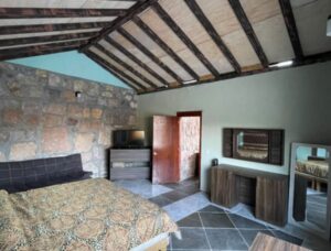 La Cabaña Dorada es uno de los alojamientos más exclusivos de Riviera Caxcana, ubicada en la parte más alta del complejo, sobre la peña, lo que le brinda una vista inigualable al entorno natural. Perfecta para quienes buscan amplitud, privacidad y una experiencia única en medio de la naturaleza.