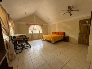 Ubicada en un entorno rodeado de naturaleza, esta habitación combina sencillez y funcionalidad, ofreciendo un espacio fresco con ventilador de techo. Perfecta para quienes desean una estadía acogedora con acceso a las principales amenidades del complejo.